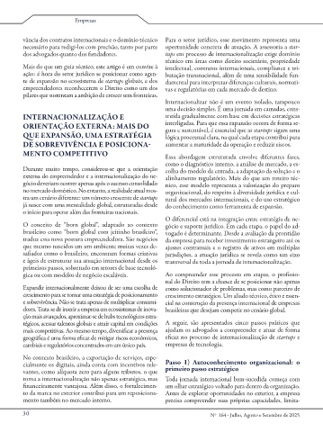empreendedores reconhecerem o Direito como um dos vas e regulatórias em cada mercado de destino.